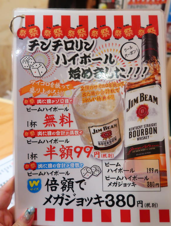 最初のドリンクは、エキサイティングなチンチロリンハイボールに決定!