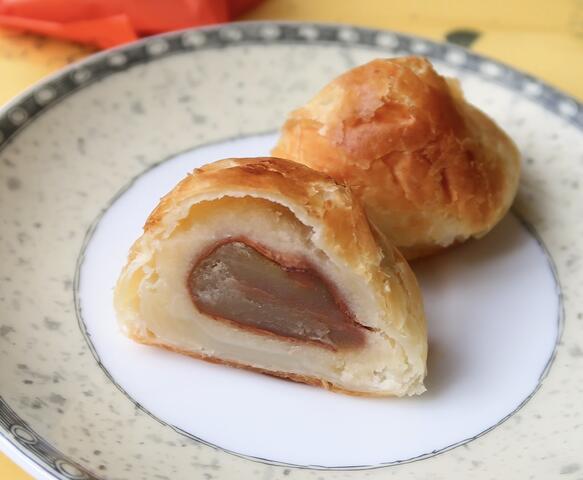 無塩バターを使ったパイ生地に渋皮栗の甘露煮と白餡。