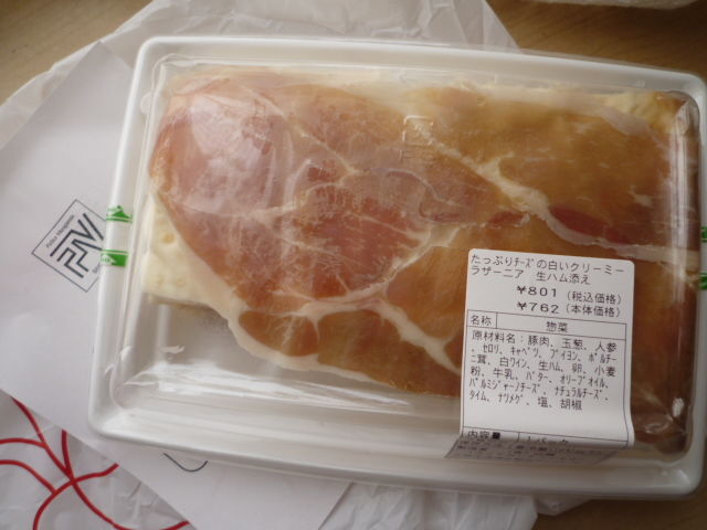 2011年02月27日 ポンテヴェッキオ 高島屋の地下にあるポンテのデリ。主力商品は、焼く前のピッツァが800円くらい。白っぽいからおいしそうに見えなくて残念。シェフおすすめというラザニア購入。ひき肉と卵とチーズが層になっていて、レンチンしたらチーズとろけます~生ハムはよけておいて、あとからのせるの。これも800円くらいだったかな。おいしくて満足ー < 前の記事次の記事 > トラックバック
