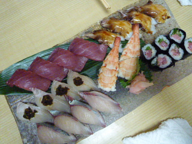 2011年07月25日 すし田 JR尼崎のすし田にて。つきだし。小魚のエスカベッシュな感じ。海鮮サラダ。おすし屋さんでお野菜がモリモリ食べられるなんて~^^お刺身盛り合わせ。いつもイカがおすすめぽい。貴重な赤霧島。兄がボトルキープしてくれた。生ビールも飲んで。うなぎ棒寿司。ふっくらとした鰻が美味しい~^^海苔はたれでテリテリ。酒蒸し。握りおまかせ。天ぷらお任せ。さくっと揚がってます。いろんなもの、天ぷらでいただけました~。赤だし。お漬物のお寿司と玉子。デザートのアイス。5人で22000円でした。満足~(≧ω≦) < 前の記事次の記事 > トラックバック