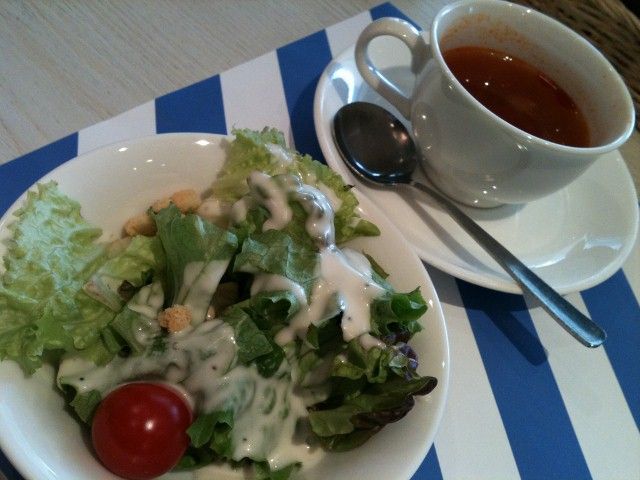 2012年01月06日 WESTRIVER cafe(ウエストリバーカフェ) 尼崎のホテル ホップインのカフェレストランでランチ。日替わりランチ(1050円)のサラダとスープ。メインはお肉かお魚が選べて、私はお肉。ライス、パンも選べます。お肉は、豚肉の包み焼き。魚料理は、イトヨリ。メインのボリュームは少なめかなぁ。飲み物付。紅茶はポットサービス。コーヒー、オレンジジュースもあり。こちらは特製カレーのセット。ライスたっぷり。カレーはあとがけ。サラダにパンもw和風スパゲティのセット。ごぼうのフライが、香ばしくていい仕事してたって。 < 前の記事次の記事 > トラックバック