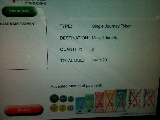 券売機はカラータッチパネル。(マレー語または英語に切り替え)
