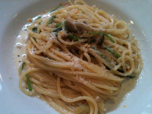 サラダまたはスープ、パスタ(2択)、パン、ドルチェ(3択)、ドリンクの