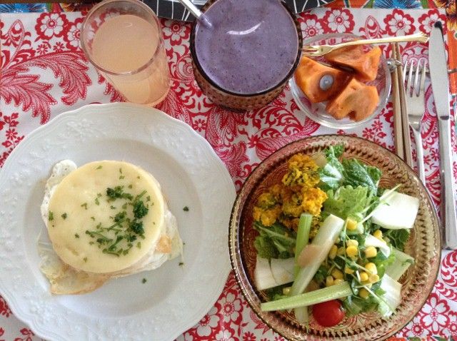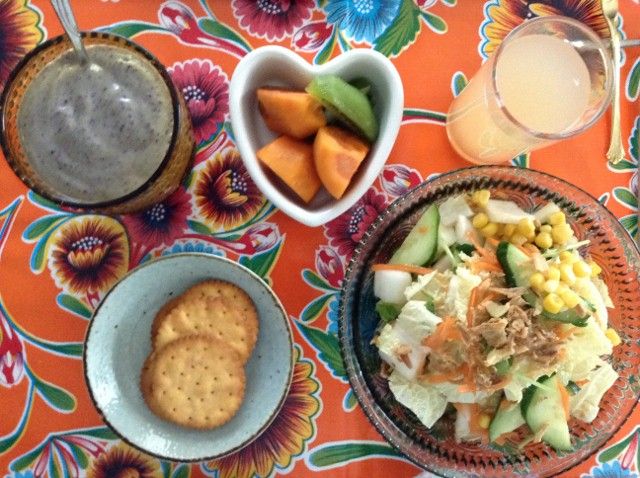 たっぷりサラダ、酒粕スムージー、フルーツに、