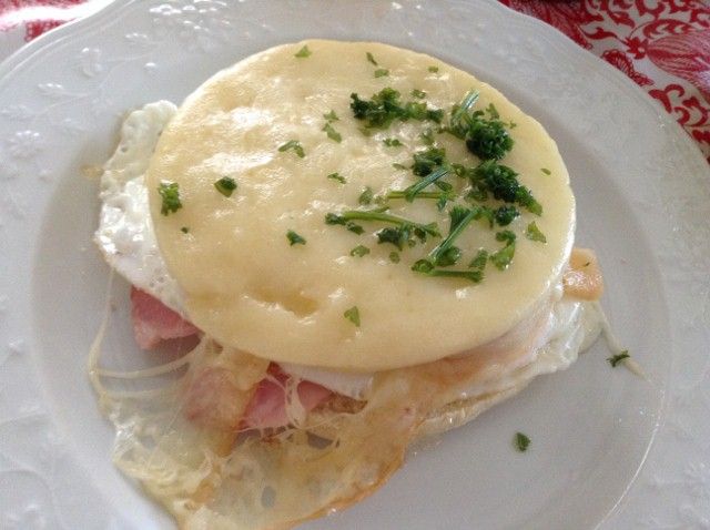 チーズのせマフィンを、ハムエッグのせマフィンに重ねる。