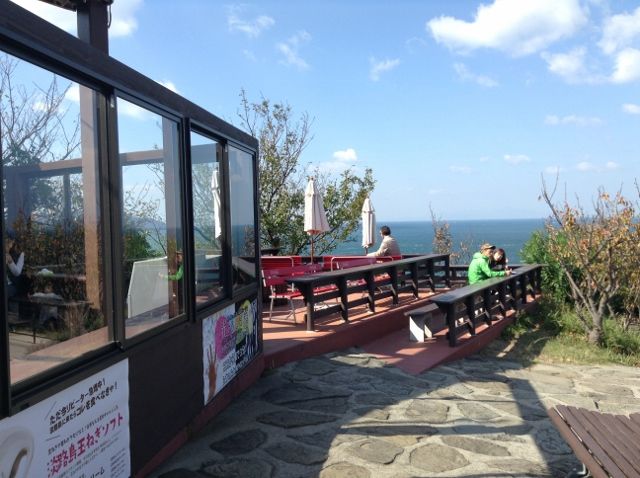 崖っぷちの、景色のいいテラスで食べたから気分も上々。