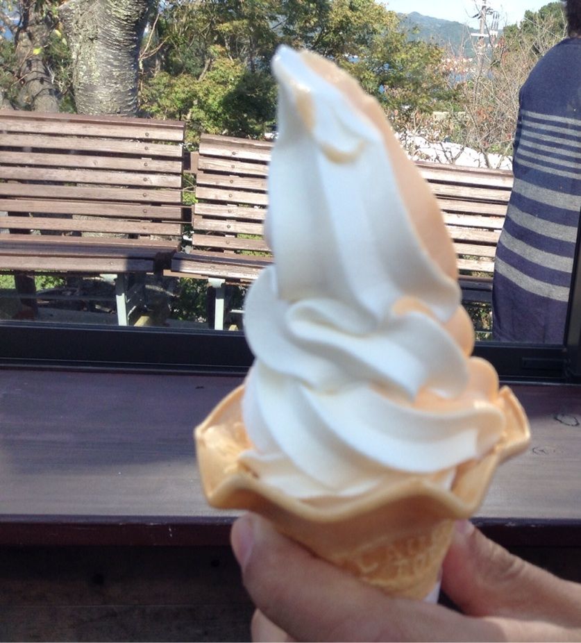 食後はびわと淡路島牛乳のミックスソフトクリーム(多分)。
