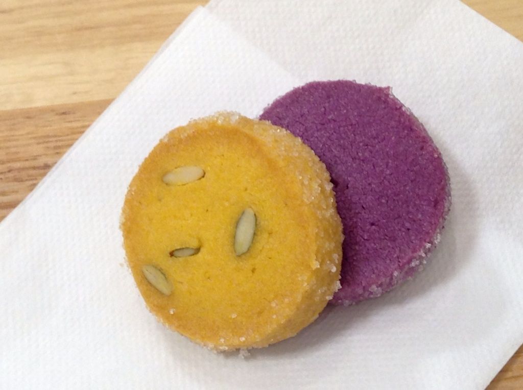 かぼちゃと、紅芋のクッキーを試食させてもらいました♪