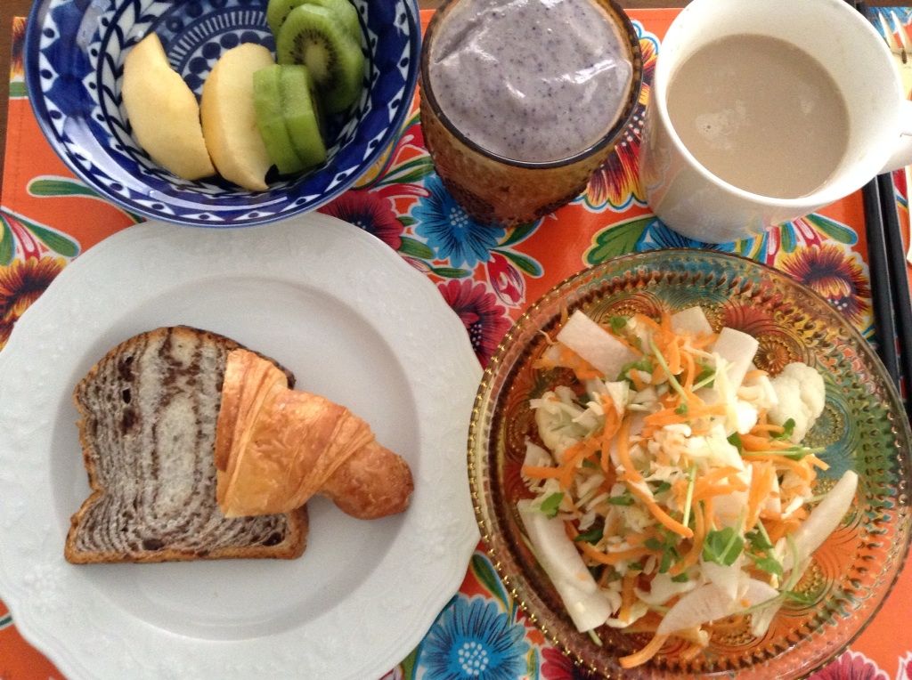2015年01月18日 あさごはん お鍋の残りに野菜を増加して、お餅を入れたもの。と、ポテサラ。スープがけごはん。神戸屋のパン。スープとりんごのみ。ジャム、塩キャラメル+生クリームが、うまし。つづみのクロワッサンと、カワのナッツのハード系+クリチジャム。パンデュースのバゲットかな。お餅+韓国のりフレーク。 < 前の記事次の記事 > トラックバック