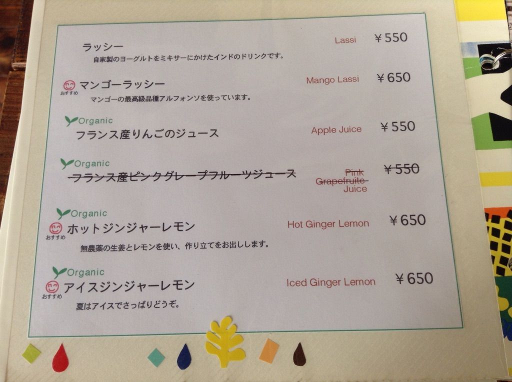 ドリンクのラインナップがすごいし、カレーもあるので、