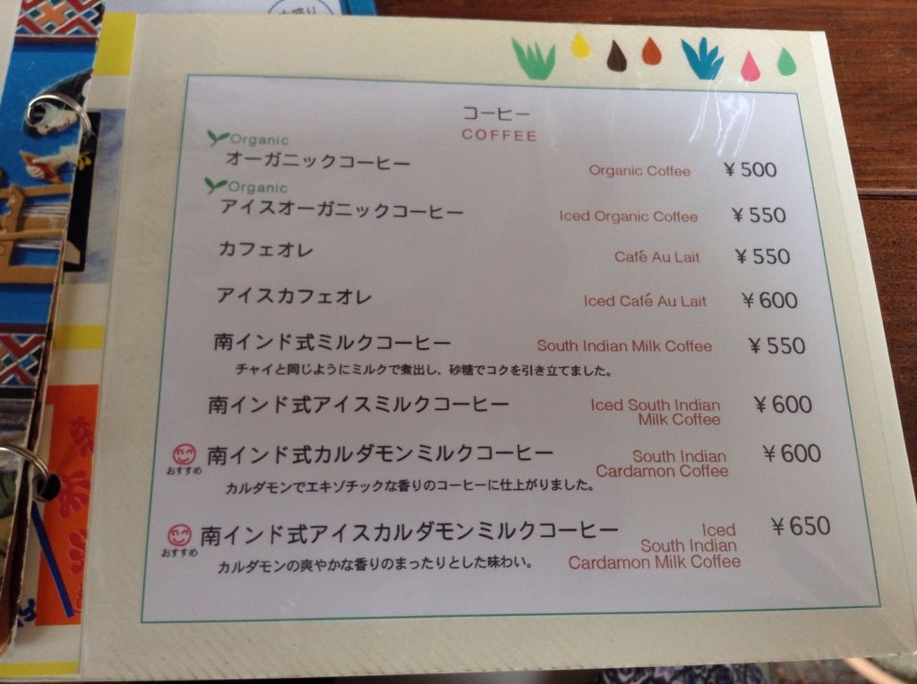 南インド式カルダモンミルクコーヒー。¥600