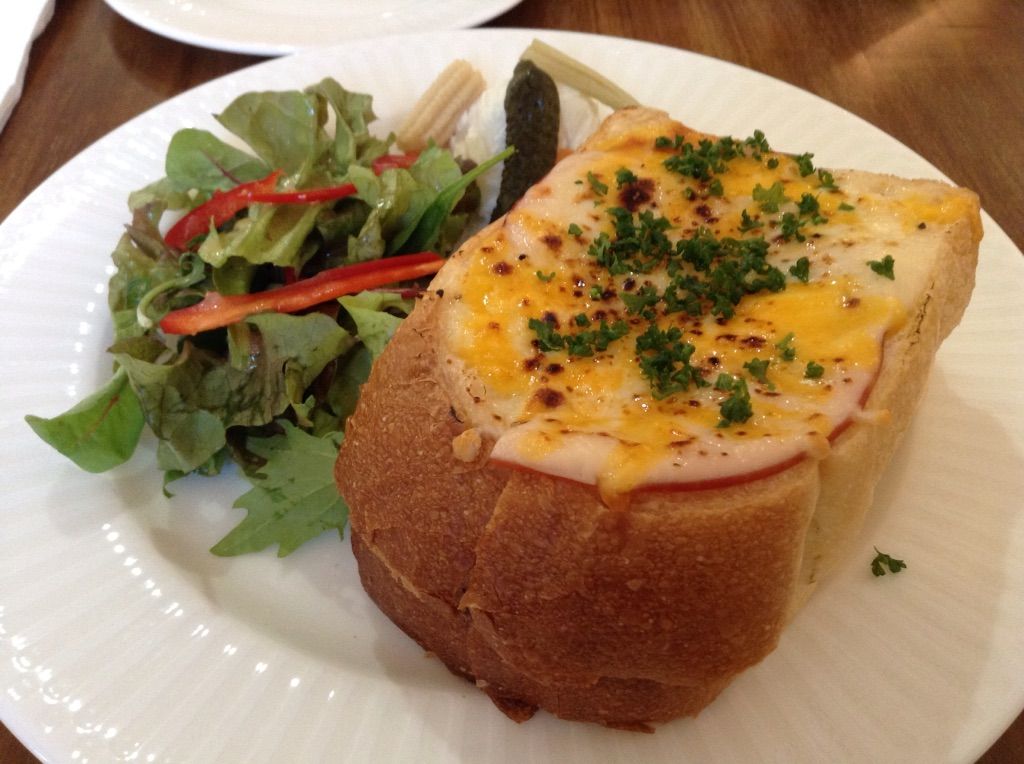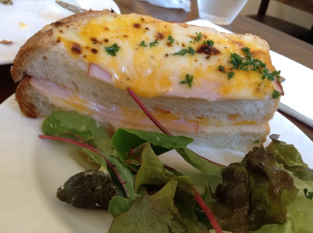 ランチは3種類あるなか、クロックムッシュのドリンクセット+デザートにしました。