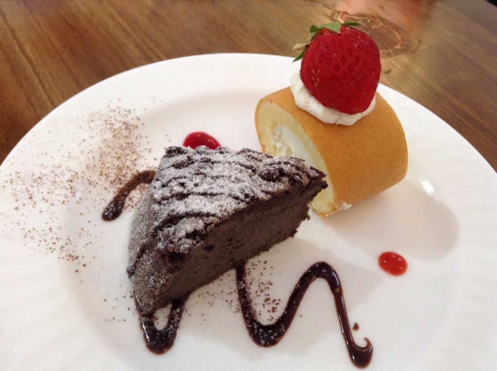 おなじみのエイトビーロールのプチサイズと、セット専用のガトーショコラでした。