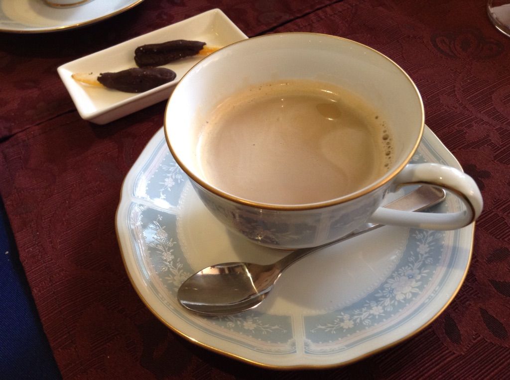 食後はコーヒー・紅茶・エスプレッソからで、カフェオレもOKとのことでそちらを。