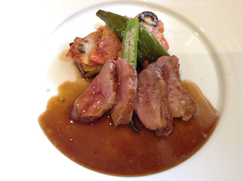 メインに「仔ガモのロースト」と「エゾ鹿のピカタ」をシェアしていただきました。