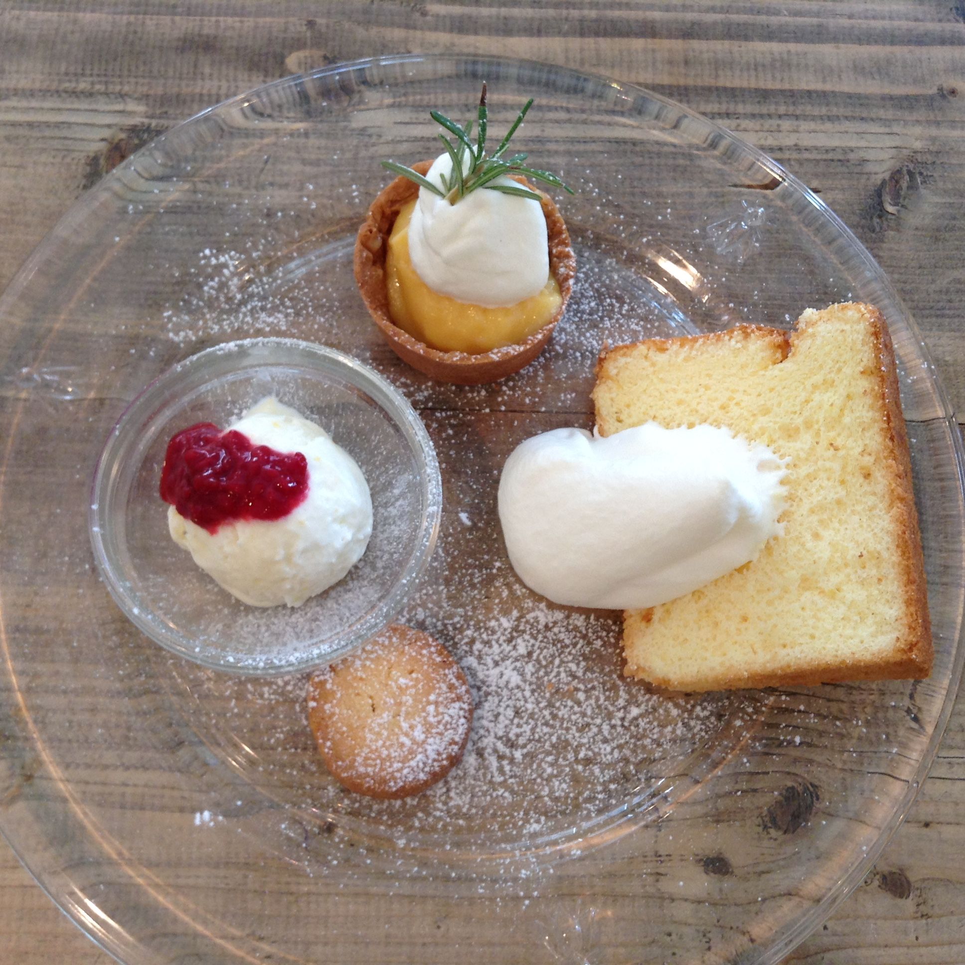 レモンアイス(フランボワーズソースがけ)、レモンクリームタルト(これが