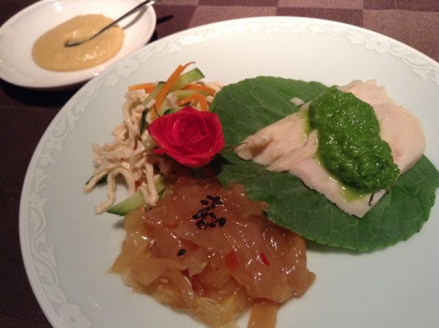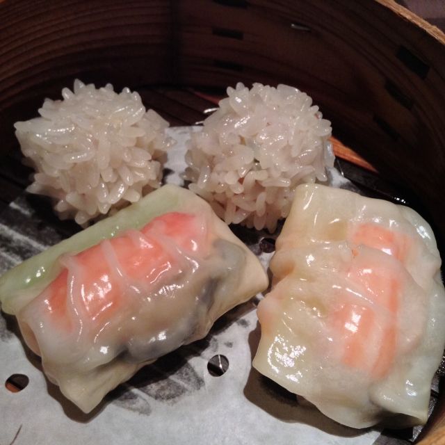 豚肉入りもち米団子、海鮮と香味野菜の三色巻き
