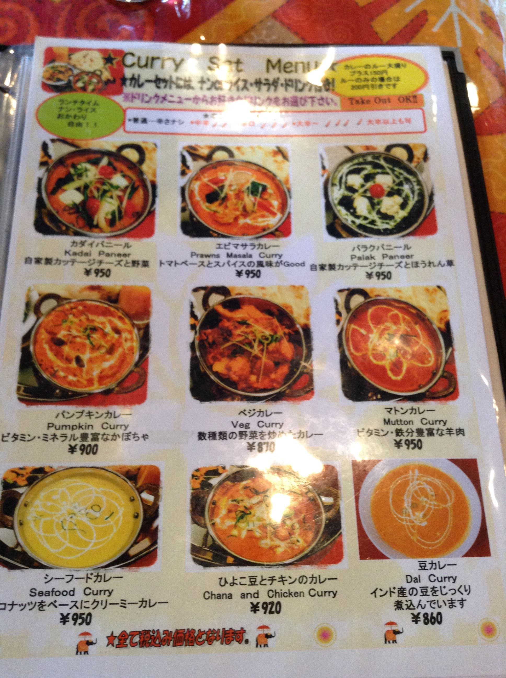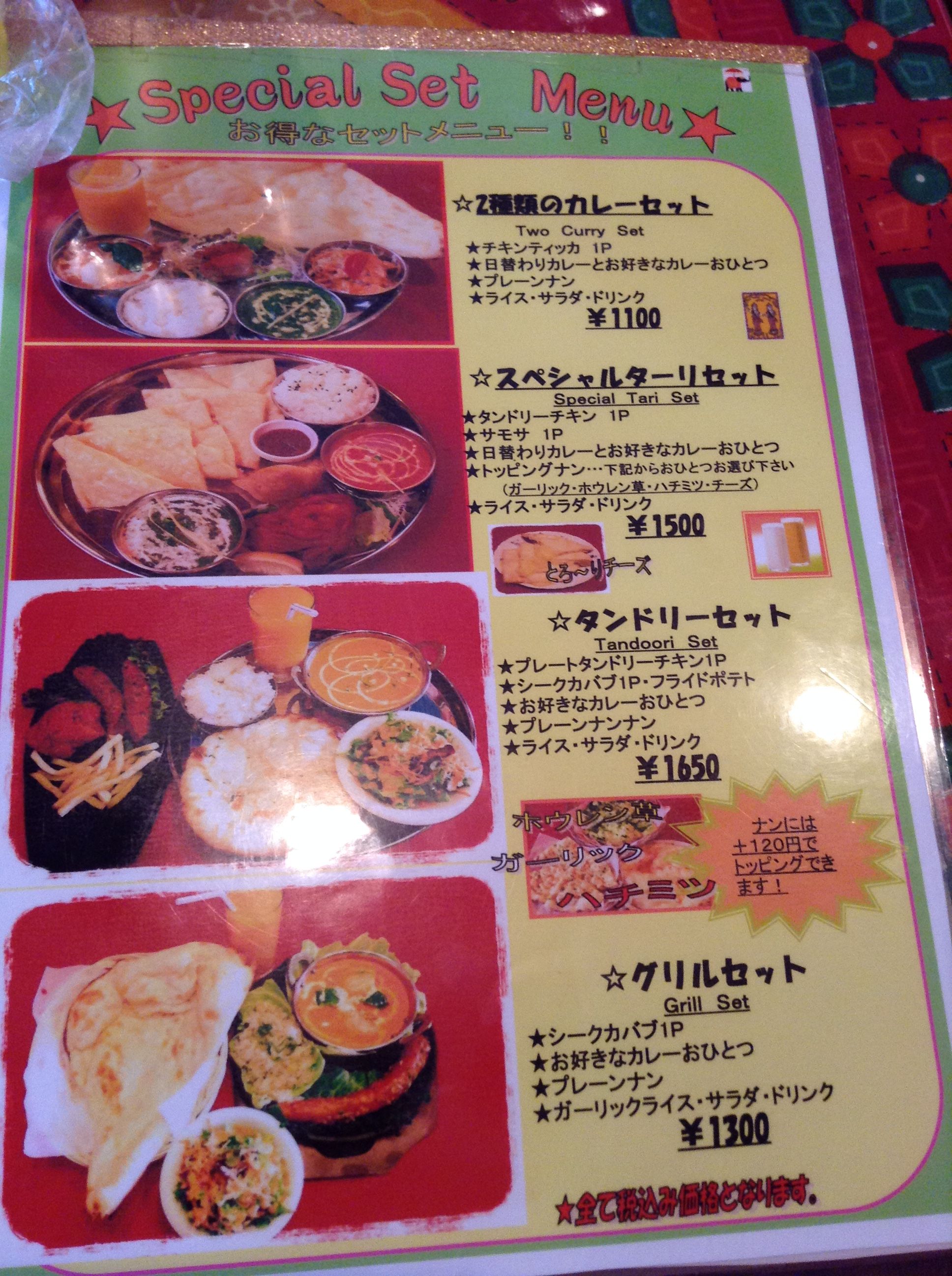 お得な2種類のカレーセット ¥1100 にしました。