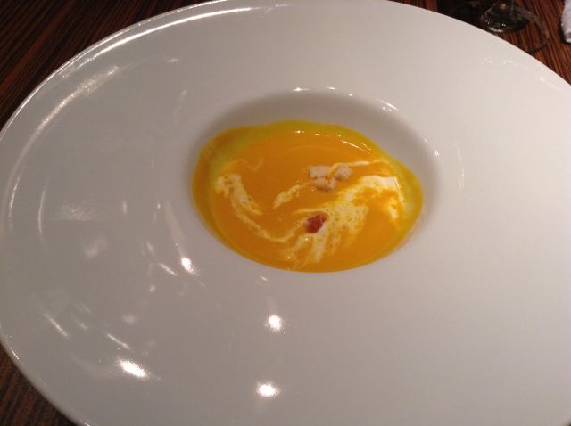 「ホワイトアスパラガスの冷製ポタージュ コンソメとキャビアを添えて」とあったので、
