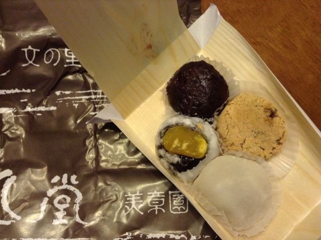 栗田舎、りんご大福、おはぎ2種。(つぶあん、きなこ)