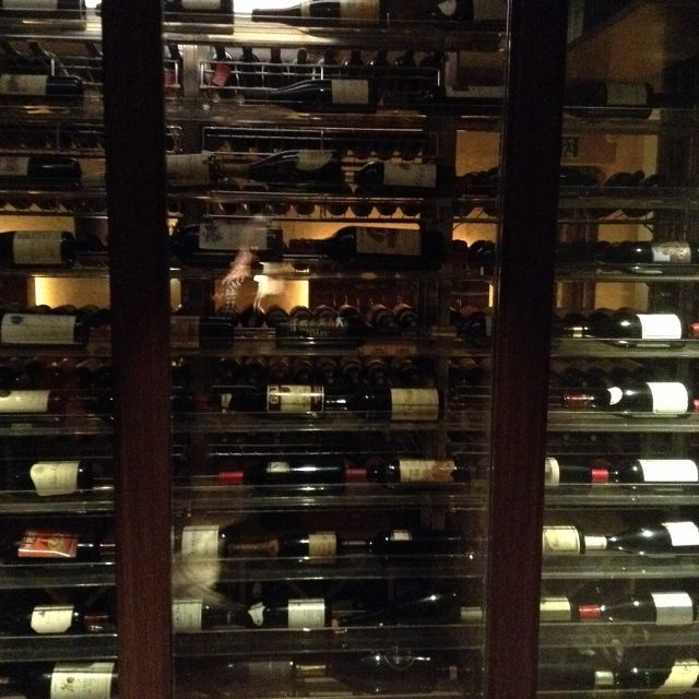 入るなり、大きなセラーが! 常時400種類のワインがあるそう。
