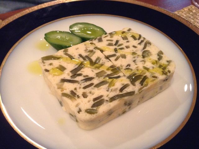 まずは、「帆立と鳴門のメカブのテリーヌ」¥1200