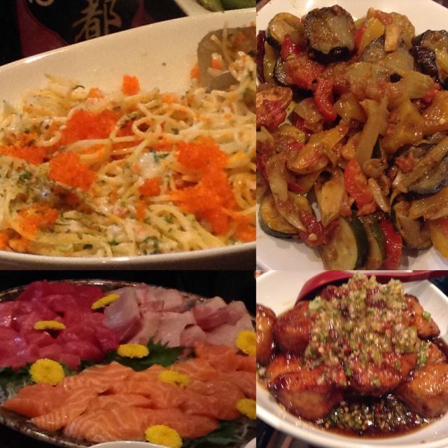 お刺身盛り合わせ、肉団子甘酢。