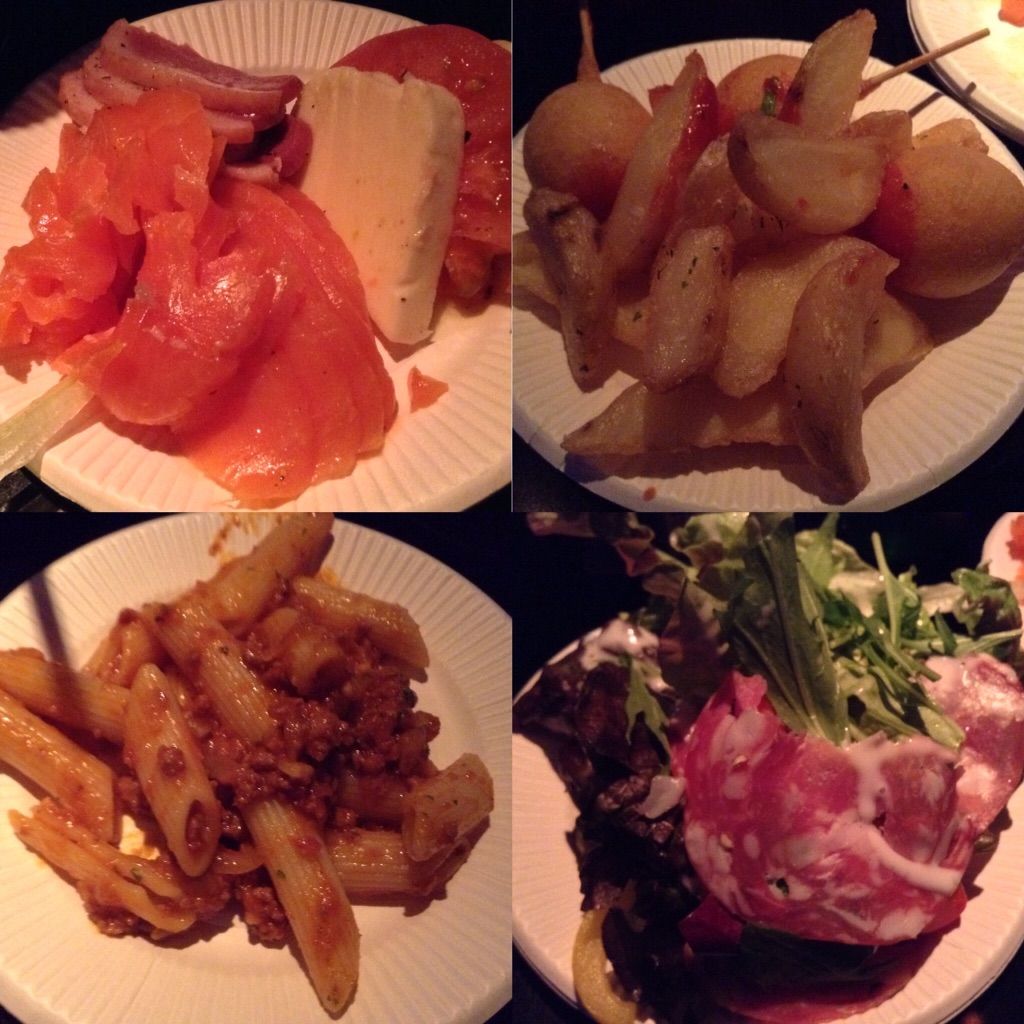 サーモン、合鴨くんせい、カプレーゼ、ポテト、アメリカンソーセージ。