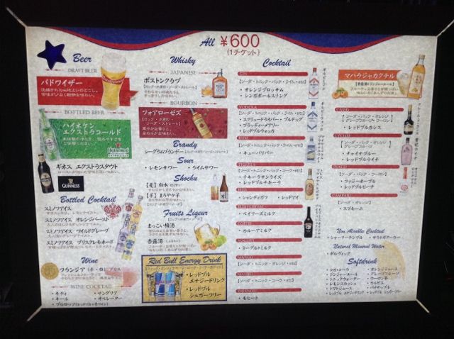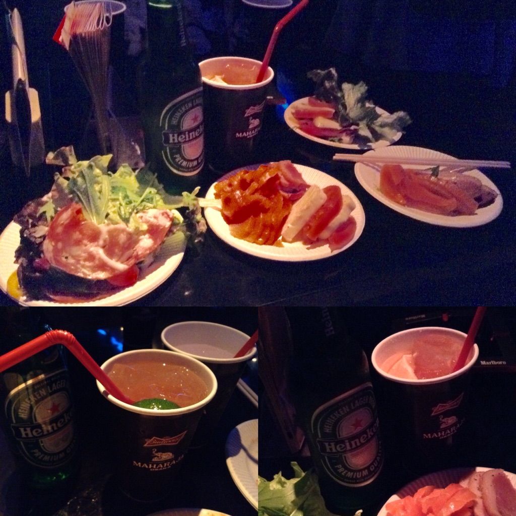 まずハイネケンボトル、その後もうワンドリンクもらえたのでマハラジャカクテル。