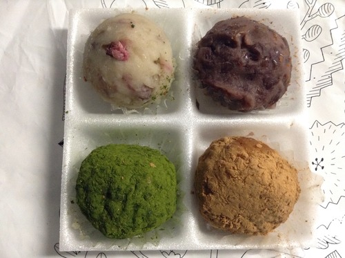 大納言雑穀もち、深炒きなこ雑穀もち、抹茶きなこ雑穀もち、