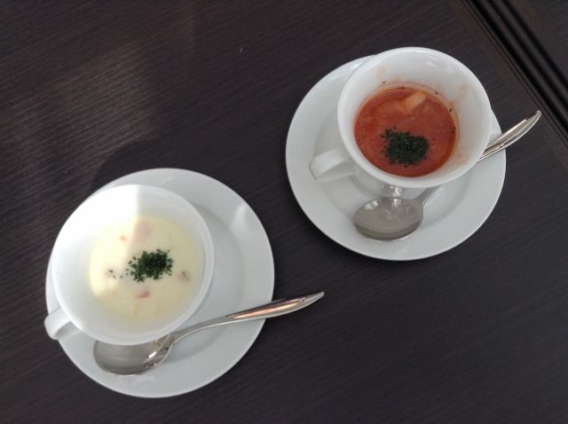 イングランドチャウダースープとマンハッタンチャウダースープ。