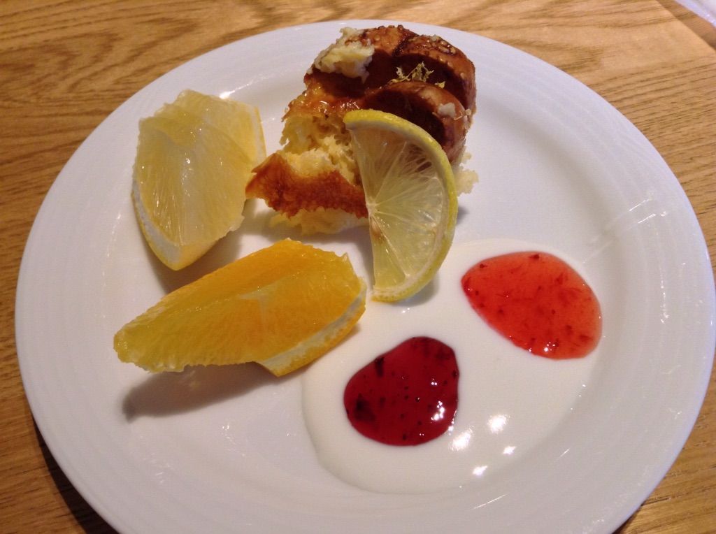 カスピ海ヨーグルト、ジャム、フルーツ。
