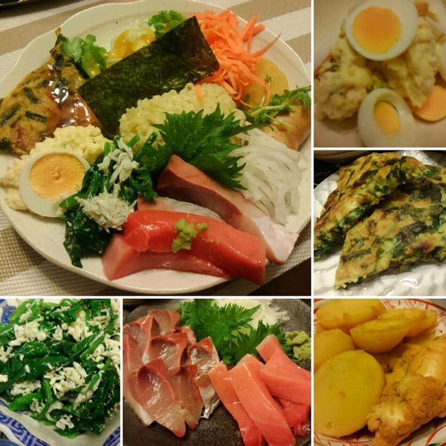 昨日の残りのおかずや野菜をどんどん載せていき、