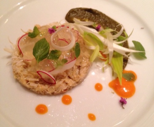 一見蟹味噌風なのはオゼイユのピュレ、オレンジのパプリカのソース。