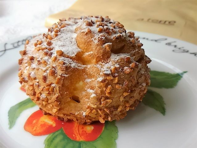 シュー皮は少し塩気が効いていて、表面にアーモンドがタップリ。