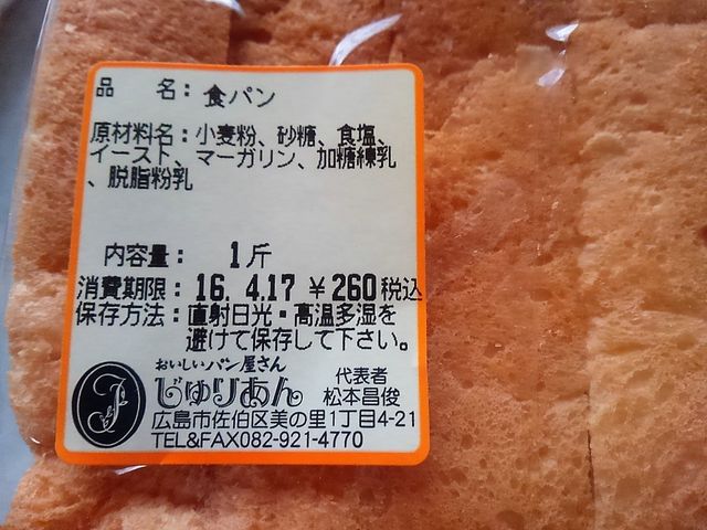 2016年08月29日 ベーカリーじゅりあん 4月のこと、広島パルコで「パンタスティック!!」という広島で人気のベーカリーが集まるイベント。日替わりパン屋さんありで楽しかった~☆「じゅりあん」というお店の。食パンが美味しそうだった~。トーストで食べたけど、サンドイッチにしたらよかったかも。フレンチトースト。見た目にひかれて~~。昔ながらの素朴味。クリームパンが人気のようです。また機会があれば~。一日一回ぽちっとよろしくお願いします♪ベーカリーじゅりあん 関連ランキング:パン | 楽々園駅、山陽女子大前駅 < 前の記事次の記事 > トラックバック