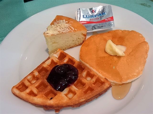 パンケーキもワッフルも作り置きだけど、美味しかった。