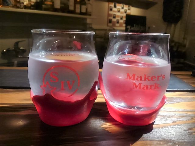 メイカーズマークのグラス。コースターかわいい(≧▽≦)