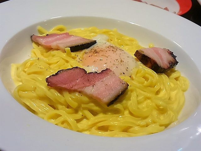 〆は、黒ベーコンのカルボナーラ ¥880