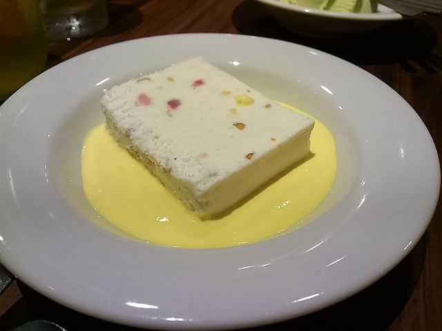 シチリアのアイスケーキに、マンゴークリームソース。