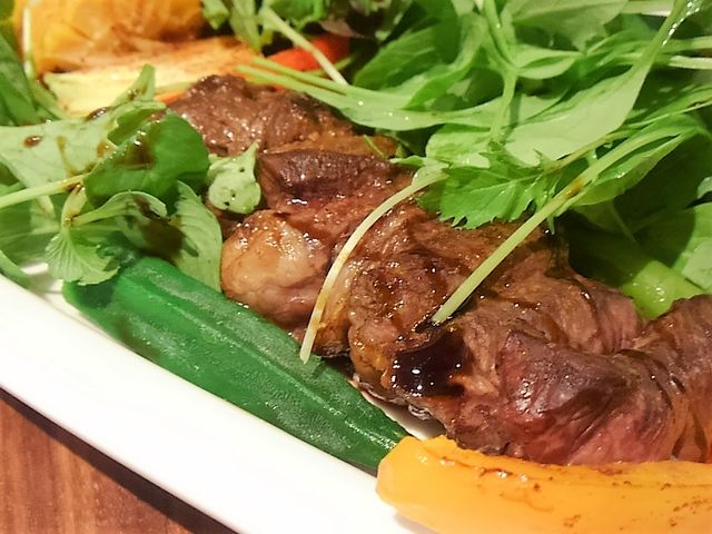 長さ30cmの大串に牛・野菜・牛・野菜・・・エスニックテイストです。