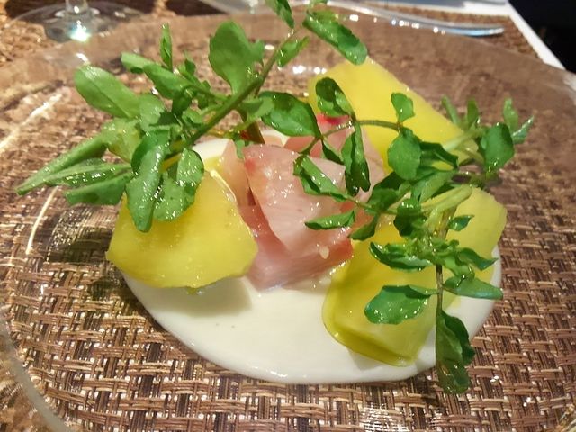 淡路産鮮魚のカルパッチョ 泉州水茄子とクレソンのサラダ仕立て