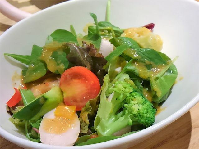 「柔らか鶏ムネ肉の色どり野菜サラダ」¥580と、