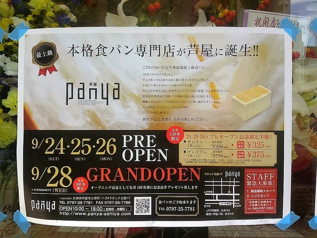 完全無添加最上級食パン専門店「Panya 芦屋」がグランドオープン