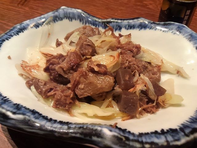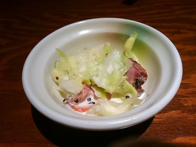 つきだしは、キャベツとハム化ソーセージのマヨ炒めみたいなもの~。