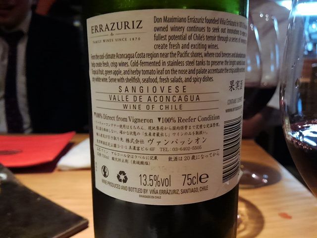 サンジョヴェーゼ チリ産 赤 ミディアム ¥4600
