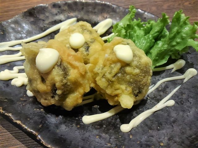 そのまま食べても美味しいポテサラを味付きの海苔で巻いて天ぷらに。