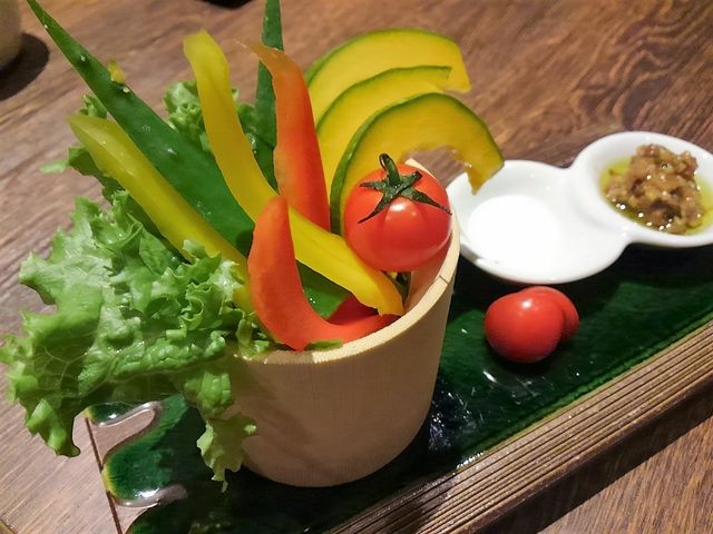 旬野菜のお造り仕立て 金山寺味噌ディップ ¥590