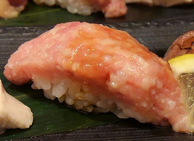 肉寿司ブームですが、こちらは鶏の生肉。