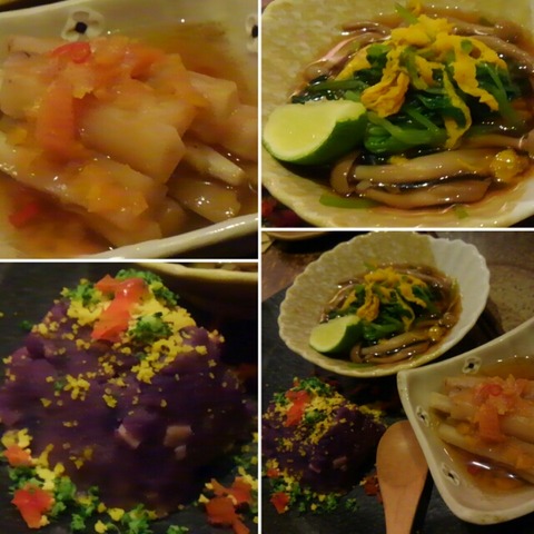 源助大根のふろふき、旬野菜とベーコンのアヒージョ、むかご塩ゆで、